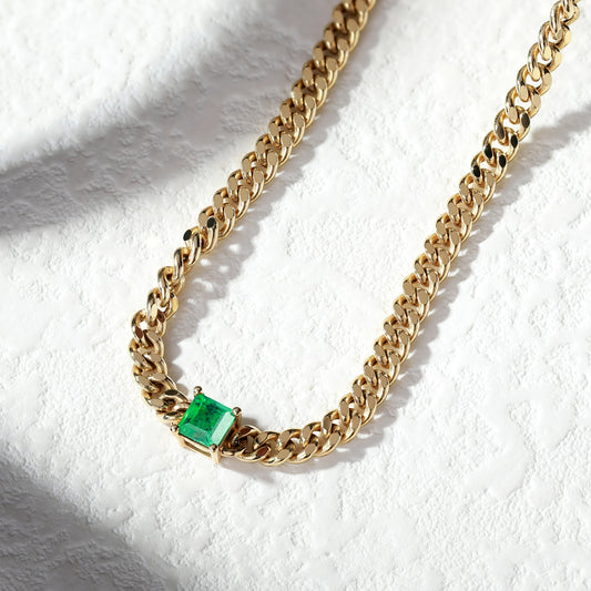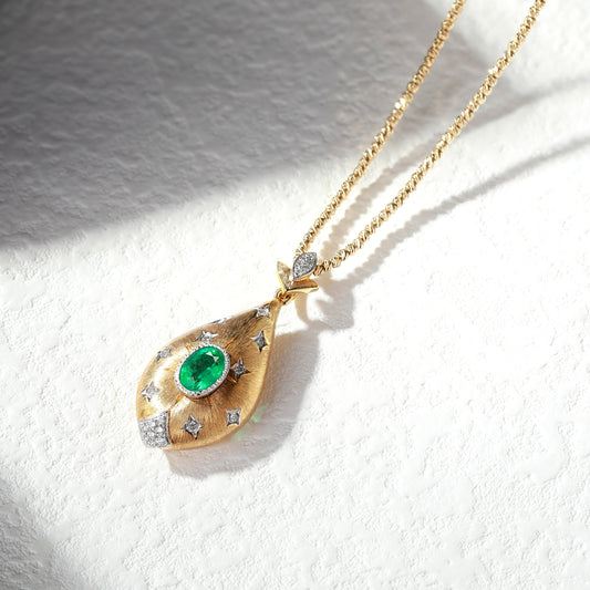 18K Gold Pear Emerald Pendant Necklace with Diamond