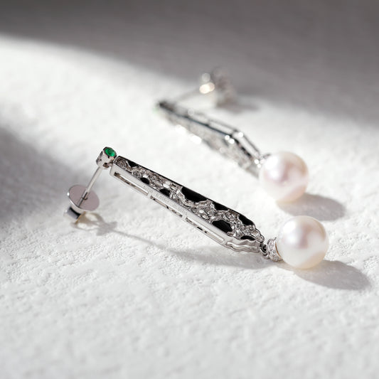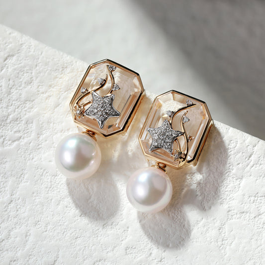 18K Gold Pearl Earrings with Diamond