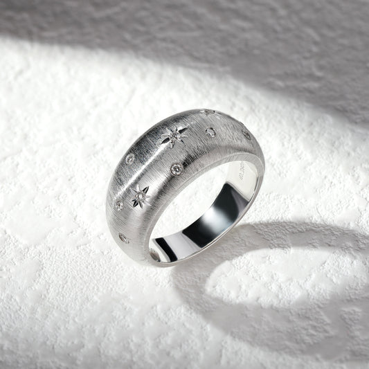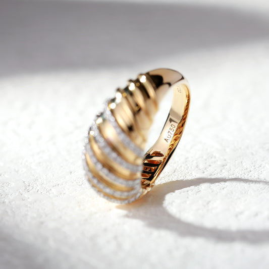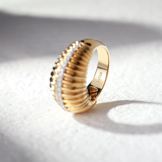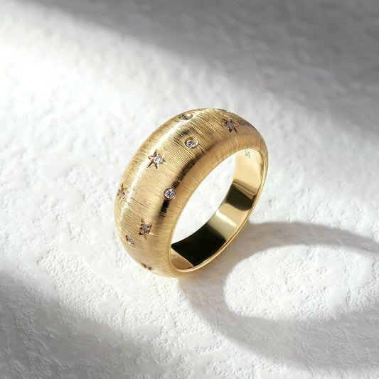 18K Gold Brushed Diamond Ring