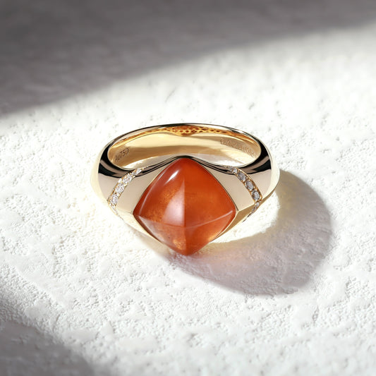 18K Gold Natural Fanta Orange Garnet Ring