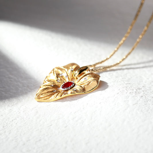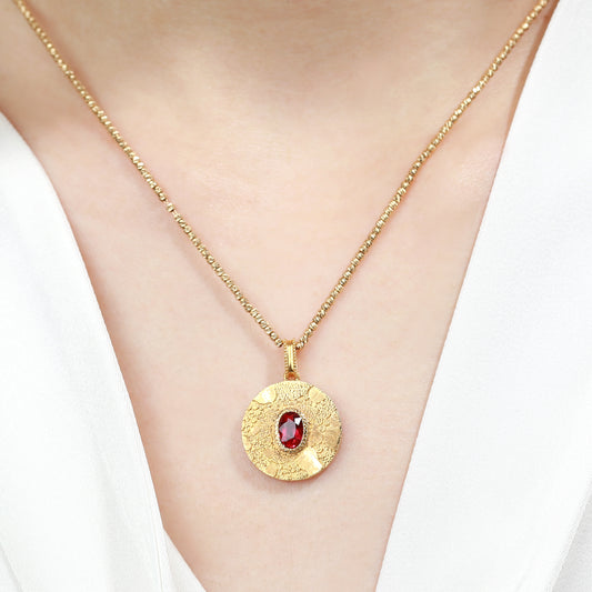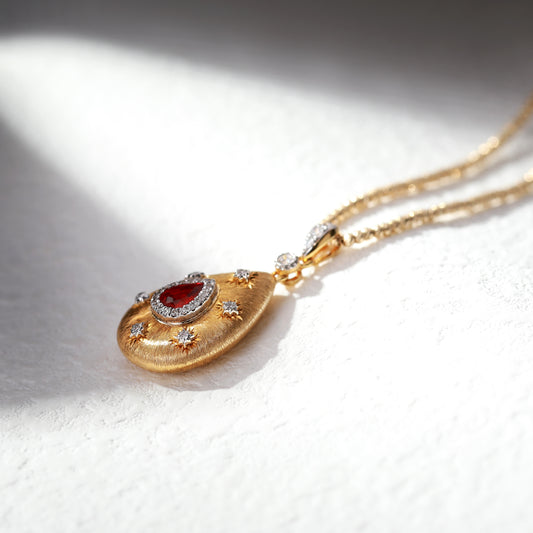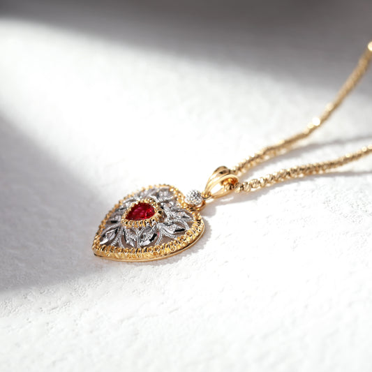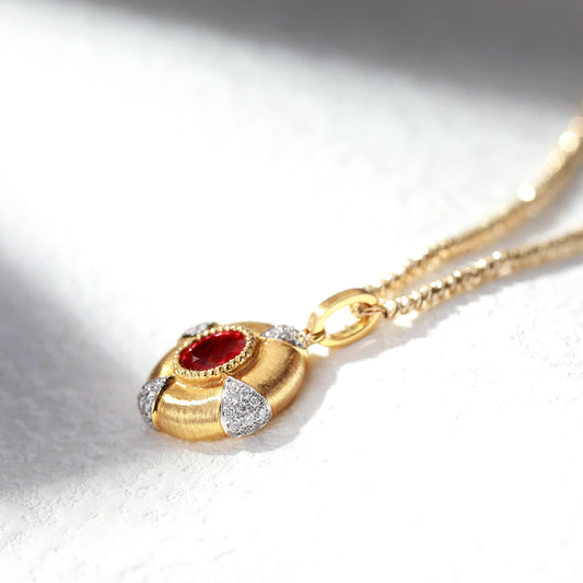 18K Gold Pigeon Blood Ruby Pendant Necklace
