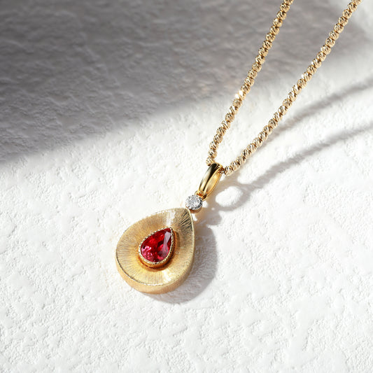 18K Gold Pigeon Blood Red Ruby Pendant Necklace